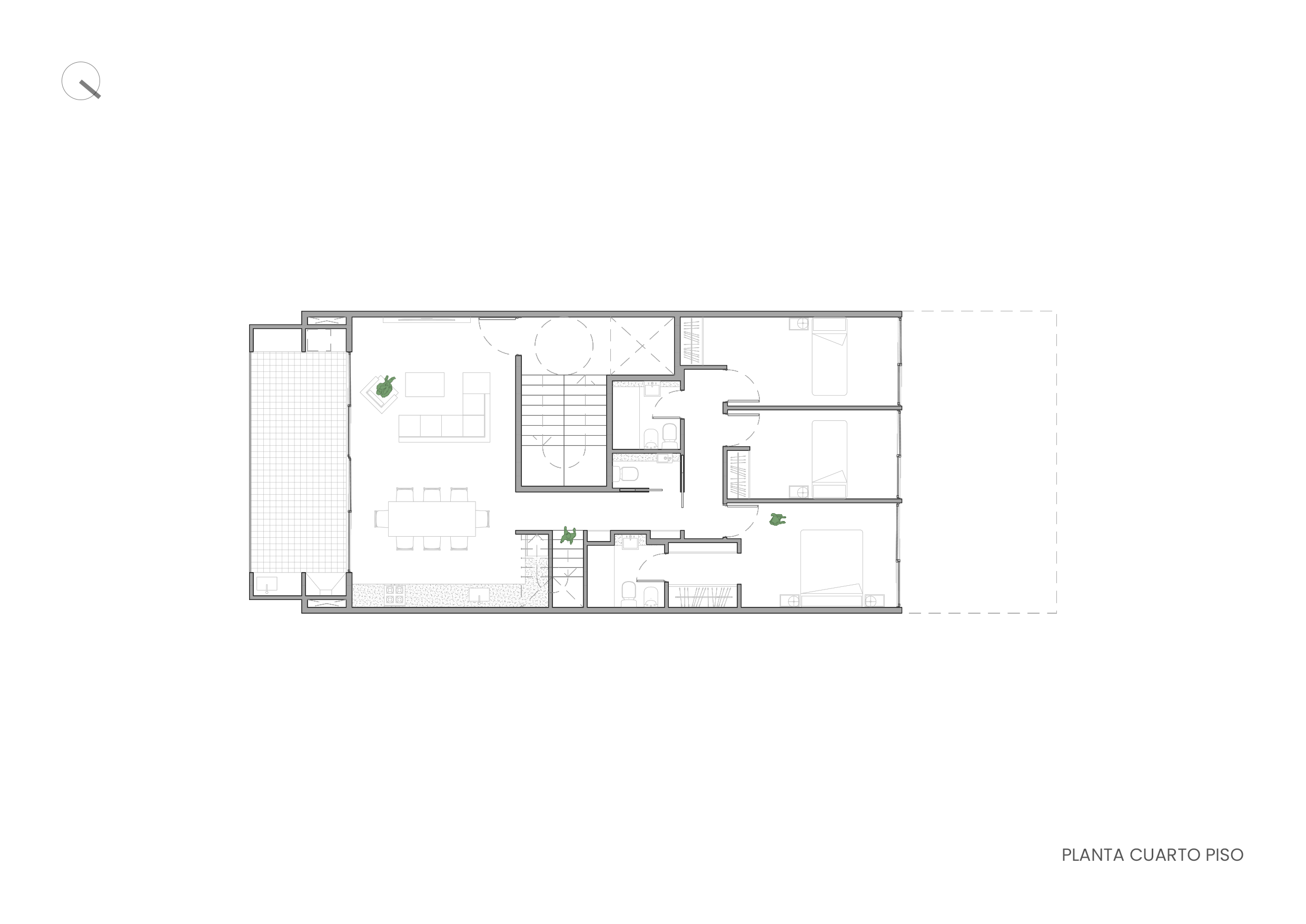 Edificio de cuatro unidades, una por piso, con espacios amplios, luminosos y conectados con el exterior a través de balcones. Ubicado en una zona residencial tranquila, combina privacidad y calidad espacial en cada detalle.